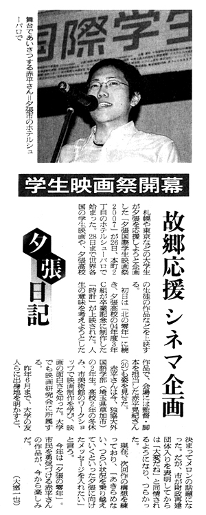 「夕張国際学生映画祭2007」が、 朝日新聞で取り上げられました。 |
